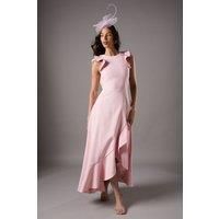 Elegant crepe midi dress with dramatic ruffle detailing along the shoulder and cascading down the skirt Sophisticated round neckline complemented by a striking cut-out back design Asymmetric hemline creates a graceful silhouette with beautiful movement Sleeveless design perfect for showcasing statement jewellery Figure-enhancing fit with subtle stretch for all-day comfort The Lisa Ruffle Midi Dress from Coast embodies refined elegance with its contemporary design. The striking ruffle detail adds architectural interest to this sophisticated piece, whilst the asymmetric hemline creates a flattering silhouette that moves beautifully with every step. Style with strappy heels and a coordinating fascinator as seen on our model for race day sophistication, or pair with delicate drop earrings and an embellished clutch for wedding guest perfection. The cut-out back detail adds an unexpected twist to this otherwise classic silhouette, ensuring you'll make a memorable impression. This versatile d... - Manufacturers part number: Coast_5063631479251