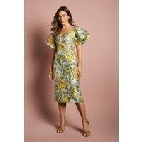 Stunning jacquard fabric with metallic thread detail for a luxurious shimmer Dramatic volume sleeves create an elegant silhouette Flattering V-neckline frames the dcolletage beautifully Midi length design perfect for sophisticated occasions Delicate tie-back detail adds a refined finishing touch Make a striking impression at your next special event with this exquisite Coast midi dress. The textured jacquard fabric catches the light beautifully, whilst the voluminous sleeves add a con... - Manufacturers part number: Coast_5063631617356