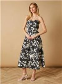 Elegant sweetheart neckline that beautifully frames the dcolletage Structured ottoman twill fabric providing a flattering silhouette Feminine floral pattern throughout for a romantic aesthetic Midi length design falling gracefully below the knee Strapless design with supportive bodice structure This captivating floral midi dress from Oasis presents the perfect blend of sophistication and feminine charm. The structured ottoman twill fabric creates a defined silhouette whilst the sweet...
