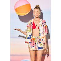 Striking postcard-inspired print featuring artistic motifs and text elements Comfortable drawstring waist for an adjustable fit Relaxed, loose-fitting silhouette with a flattering mid-thigh length Short-sleeve matching shirt creates a coordinated set look Lightweight woven fabric ideal for warm-weather styling Make a bold statement with these eye-catching HCD Postcard Print Drawstring Waist Shorts from Warehouse. The artistic, vibrant print transforms a casual silhouette into something truly distinctive, perfect for those who appreciate unique fashion. Style them as seen with the matching shirt for a coordinated ensemble that works brilliantly for brunch dates or beachside strolls. For a more casual approach, pair with a simple white t-shirt and trainers for daytime outings. The drawstring waist ensures comfort whilst allowing you to customise the fit to your preference. These shorts are versatile enough to take you from casual family gatherings to relaxed weekend activities with frien... - Manufacturers part number: Warehouse_5063631823801