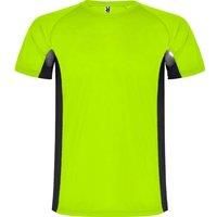 100% Polyester. Fabric: Birdseye, Mesh. Design: Contrast Detail. Neckline: Crew Neck. Sleeve-Type: Short-Sleeved. Fabric Technology: Breathable. Label, Perforated Detail, Reinforced Seams, Removable, Side Panels. Fit: Cool Fit. 140gsm. Packaging: Polybag. Suitable for: Screenprint. | ROLY Men Shanghai Short-Sleeved Sports T-Shirt in Bright Green | Size: 2X-large