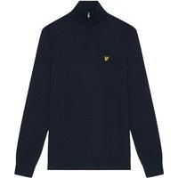 50% Acrylic, 50% Wool. Fabric: Merino Wool. Design: Logo. Hem: Ribbed. Sleeve-Type: Long-Sleeved. Neckline: Ribbed, Standing Collar. Cuff: Ribbed. Fastening: Pull Over, Quarter Zip. XS: 34.5 in. S: 37 in. M: 39.5 in. L: 42 in. XL: 44 in. XXL: 47.5 in. | Lyle & Scott Men's Merino Wool Quarter Zip Golf Jumper in Dark Navy | Size: XS