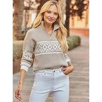 Save 50% on the Sosandar Taupe & Ivory Patterned Quarter Zip Jumper - Beige from Very. We found this offer 7 days ago, so hurry whilst stocks last! - Manufacturers part number: WR3LO