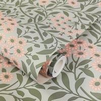 Material: Paper. Design: Damask, Floral. Design Repeat: 64cm. Easy Application, Good Lightfastness, Paste the Paper, Straight Pattern Match. Finish: Textured. | World of Wallpaper Botanical Damask Wallpaper in Pale Green