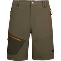 91% Polyester, 9% Elastane. Design: Contrast Detail, Logo. Pockets: 2 Side Pockets, Zip, 2 Back Pockets, Flap Closure, Buttoned, 1 Cargo Pocket. Fastening: Button. Fabric Technology: DWR Finish, Stretch. Waistline: Adjustable, Flat Waist. Belt Loops. Fit: Comfort. | Trespass Men Daars Casual Shorts in Khaki | Size: X-Small - Manufacturers part number: Trespass_UTTP6332_marshland_MP-7813