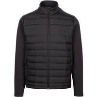 Material: Elastane, Polyester. Design: Logo, Plain. Fabric Technology: Insulating. Cuff: Bound, Elasticated. Neckline: Hooded. Sleeve-Type: Long-Sleeved. Padded. Hood Features: Fleece Lined, Sew-On. Pockets: 2 Side Pockets, Zip. Fastening: Full Zip. Hem: Bound, Elasticated. XS: 35 in. S: 37 in. M: 40 in. L: 43 in. | Trespass Men Jorge Hybrid Jacket in Black | Size: Medium