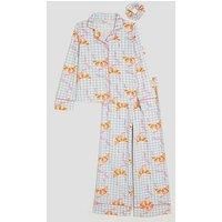 River Island Older Girls Gingham Croissant Pyjama Set Size & Fit Available in sizes 5-6 years - 13-14 years Details Older Girls Gingham Croissant Pyjama Set by River Island Light Blue Set of 3 Matching gingham croissant print Top Collared Buttoned fastening Long sleeves Bottoms Elasticated waistband Bow detail Scrunchie Material & Care Material Content: Elastane: 8%, Polyester: 92% Washing Instructions: Machine Washable
