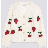 River Island Older Girls Knitted 3D Fruit Cardigan Size & Fit Available in sizes 5-6 years - 13-14 years Details Older Girls Knitted 3D Fruit Cardigan by River Island Cream V neck Long sleeve Button through Fruit embroidery Strawberry buttons Material & Care 100% Acrylic Machine wash at max 40C very gentle 3D embroidered fruit graphics Buttoned fastening Knitted Long sleeves Material Content: Cotton: 100%