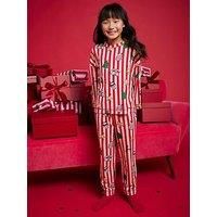 River Island Mini Girls Nephthys Family Christmas Pyjamas Size & Fit Available in sizes 12-18 months - 4-5 years Details Girls Nephthys Family Christmas Pyjamas by River Island Mini Red Striped with Christmas designs Crew neck Long sleeve Elasticated waist Material & Care Material Content: Elastane: 7%, Polyester: 93% Washing Instructions: Machine Washable - Manufacturers part number: WQ0M0