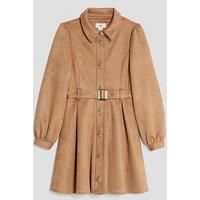 River Island Older Girls Suedette Skater Dress Size & Fit True to size - order your usual size Regular fit Skater shape Available in sizes 5 years - 14 years Details Older Girls Suedette Skater Dress by River Island Brown Collared Button through fastening Standard belt Long sleeve Heart shaped buttons Material & Care Material Content: Polyester: 100% Washing Instructions: Machine Washable 4% Elastane, 96% Polyester Machine wash at max 40C very gentle Heart Button Detail Collar Long Sleeve