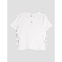 River Island Older Girls Ruched Side Top Size & Fit Regular fit Available in sizes 5-6 years - 13-14 years Details Older Girls Ruched Side Top by River Island White Sleeveless Crew neckline Material & Care Material Content: Cotton: 100% Washing Instructions: Machine Washable Crew neck Metal RI hardware Ribbed Side bows detail Short sleeves Lightweight