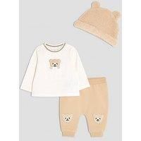River Island Baby Boys Borg Bear Hat Set Size & Fit Available in sizes 0-3 months - 12-18 months Details Boys Borg Bear Hat Set by River Island Baby Beige Set of three Bog hat Long sleeve top Popper fastening Round neck Embroidery with patch pocket Elasticated waist bottoms Bear embroidery Ribbed cuff Material & Care Material Content: Cotton: 100% Washing Instructions: Machine Washable