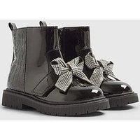 River Island Mini Girls Changeable Bow Strap Boots Size & Fit Standard fit Available in sizes 4 younger - 9 younger Details Girls Changeable Bow Strap Boots by River Island Mini Black Changeable straps Croc print Patent Flat soles Round toe Branding Bow detail Diamante embellished Zip fastening Material & Care Material Content: Sole: Rubber, Upper: PU Washing Instructions: Wipe Clean Diamante embellished Changeable straps Croc print Patent Bow detail Zip fastening