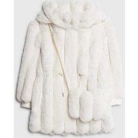 River Island Older Girls Faux Fur Coat With Bag Size & Fit Available in sizes 5-6 years - 13-14 years Details Older Girls Faux Fur Coat With Bag by River Island Beige Hooded Concealed zip fastening Long sleeves with ribbed cuffs Matching fur crossbody bag Material & Care Material Content: Cotton: 100% Washing Instructions: Machine Washable Machine wash at max 40C very gentle Chained strapped Long sleeves Zipped Faux fur textured