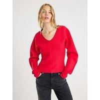 River Island Structured Sleeve Knitted Top - Red V-neck,Lone sleeve,Structured Sleeve,Knitted V-neck Material Content: 73% Viscose 27% Polyester Lone sleeve Structured Sleeve Knitted