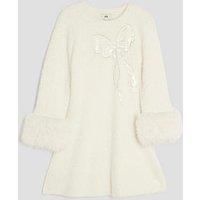 River Island Older Girls Fur Cuff Sequin Bow Skater Dress Size & Fit Available in sizes 5-6 years - 13-14 years Details Older Girls Fur Cuff Sequin Bow Skater Dress by River Island Cream Skater dress Crew neck Sequin bow graphic Fur cuff Long sleeves Heavyweight Material & Care Material Content: Cotton: 100% Washing Instructions: Machine Washable Machine wash at max 40C gentle Sequin bow graphic Skater dress Crew neck Fur cuff Heavyweight