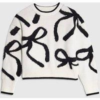 River Island Older Girls Fluffy Bow Jumper - White Size & Fit Regular fit Available in sizes 5-6 years - 13-14 years Details Older Girls Fluffy Bow Jumper - White by River Island Cream Crew neck Knitted Fluffy style Bow print Long sleeves Heavyweight Material & Care Material Content: Cotton: 100% Washing Instructions: Machine Washable