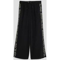 River Island Older Girls Side Tape Logo Wide Leg Trousers Size & Fit True to size - order your usual size Wide leg fit Available in sizes 5 years - 14 years Details Older Girls Side Tape Logo Wide Leg Trousers by River Island Black Wide leg trousers Elasticated waist Drawstring fastening Printed logo branding Two side slip pockets Material & Care Material Content: Cotton: 100% Washing Instructions: Machine Washable 4% Elastane, 96% Polyester Machine wash at max 40C Side taped RI style Side slip pockets ...