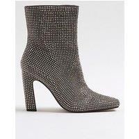 River Island Embellished Ankle Boots - Silver Heatseal Embellishment,Square Toe,Zip fastening,Block Heel,Heel height: 10cm Heatseal Embellishment Material Content: Upper: Textile, Sole: Rubber Sole: Other Materials Upper: Textile Square Toe Zip fastening Block Heel Heel height: 10cm