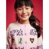 River Island Older Girls Nephthys Apres Ski Cardigan Size & Fit Regular fit Available in sizes 5-6 years - 13-14 years Details Older Girls Nephthys Apres Ski Cardigan by River Island Pink Nephthys Collection Knitted Apres Ski print Crew neckline Long sleeves Button fastening Material & Care Material Content: Cotton: 100% Washing Instructions: Machine Washable