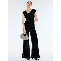 River Island Sequin Cowl Neck Jumpsuit - Black Cowl neckline,Velvet textured,Sequin detail,Sleeveless Cowl neckline Material Content: 100% Polyester Velvet textured Sequin detail Sleeveless