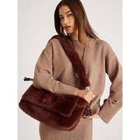 River Island Faux Fur Shoulder Bag - Brown Faux Fur,Popper fastening Faux Fur Material Content: 100% Polyester Popper fastening