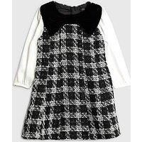 River Island Mini Girls Velvet Bow Boucle Dress Size & Fit Available in sizes 12-18 months - 4-5 years Details Girls Velvet Bow Boucle Dress by River Island Mini Black Crew neck Boucle textured Velvet bow Long sleeves with stretch cuffs Material & Care Material Content: Cotton: 100% Washing Instructions: Machine Washable