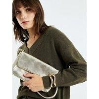 River Island Leather Knot Shoulder Bag - Gold Leather,Shoulder strap,Knot detail,Interior zipped compartment,Popper fastening Leather Material Content: 100% Leather Shoulder strap Knot detail Interior zipped compartment Popper fastening
