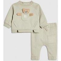 River Island Baby Boys Bear Pocket Sweatshirt Set - Khaki