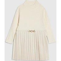 River Island Mini Girls Faux Leather Pleated Dress Size & Fit True to size - order your usual size Regular fit Mini length Available in sizes 18-24 months - 4-5 years Details Girls Faux Leather Pleated Dress by River Island Mini Cream High neckline Fur trimmed Faux leather pleated Gold metal heart hardware Long sleeves Material & Care Material Content: Cotton: 100% Washing Instructions: Machine Washable - Manufacturers part number: WSTJM