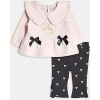River Island Baby Baby Girls Cute Bow Sweatshirt Set Size & Fit Available in sizes 0-3 months - 12-18 months Details Bg Ls Cute Bow Sweat Set by River Island Baby Pink Set of 2 Matching bow detail Sweatshirt Collared Embroidered graphic Long sleeves Leggings Bow print Elasticated waistband Material & Care Material Content: Cotton: 100% Washing Instructions: Machine Washable