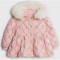 River Island Mini Girls Hooded Bow Padded Coat Size & Fit True to size - order your usual size Regular fit Available in sizes 12-18 months - 4-5 years Details Girls Hooded Bow Padded Coat by River Island Mini Pink Hooded Faux fur trim Long sleeves Padded Bow detail Popper fastening Material & Care Material Content: Polyester: 100% Washing Instructions: Machine Washable