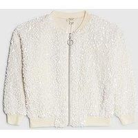 River Island Mini Girls Sequin Bomber Jacket - White