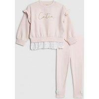 River Island Mini Girls Broderie Hem Cutie Sweatshirt Set - Pink