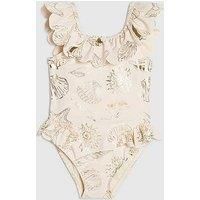 River Island Mini Girls Gold Foil Shell Swimsuit - Cream