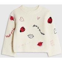 River Island Mini Girls Ladybird Lips Jumper - Cream