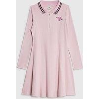River Island Older Girls Long Sleeved Ribbed Zip Polo Dress Size & Fit Available in sizes 5-6 years - 13-14 years Details Older Girls Long Sleeved Ribbed Zip Polo Dress by River Island Pink Ribbed fabric Polo collared Quarter zipped Embroidered RI heart graphic Long sleeves Material & Care Material Content: Cotton: 100% Washing Instructions: Machine Washable