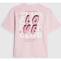 River Island Older Girls Love Club Back Print T-Shirt - Pink