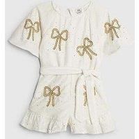 Save 70% on the River Island Girls Playsuit Cream Velvet Bow Crew Neck Zip Back Sequin Outfit from eBay Daily Deals. We found this offer today, so hurry whilst stocks last! - Manufacturers part number: WRNUD