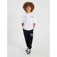 River Island Older Boys Design Studios Back Print Joggers Set Size & Fit Available in sizes 5-6 years - 13-14 years Details Older Boys Design Studios Back Print Joggers Set by River Island White 2-piece set Crew neck T-shirt River Island design studios graphic print Short sleeve Drawstring waistband joggers Graphic print detail Cuffed hem Material & Care Material Content: Cotton: 100% Washing Instructions: Machine Washable - Manufacturers part number: WUUAN