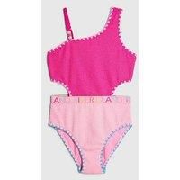 River Island Older Girls Textured Asymmetric Swimsuit - Pink