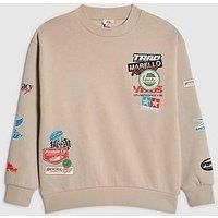 River Island Older Boys Motorsport Badges Sweatshirt - Beige