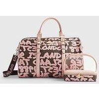 River Island Monogram Graffiti Barrell Bag Bundle - Brown Set of 2,Barrell bag,Graffiti monogram print,Detachable webbed crossbody strap,Zip fastening,Grab top handles,Internal compartments,Dimensions: L: 27cm, W: 43cm, D: 26,Perspex vanity bag,Zip fastening,Concealed jewellery storage compartments Set of 2 Material Content: 100% Polyurethane Barrell bag Graffiti monogram print Detachable webbed crossbody strap Zip fastening Grab top handles Internal compartments Dimensions: L: 27cm W: 43cm D: 26