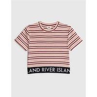 River Island Older Girls Stripe Waistband Top Size & Fit Available in sizes 5-6 years - 13-14 years Details Older Girls Stripe Waistband Top by River Island Pink Crew neck Ribbed RI waistband Short sleeves Lightweight Material & Care Material Content: Cotton: 100% Washing Instructions: Machine Washable