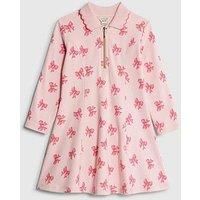 River Island Mini Girls Bow Ribbed Polo Dress Size & Fit True to size - order your usual size Regular fit Mini length Available in sizes 12-18 months - 4-5 years Details Girls Bow Ribbed Polo Dress by River Island Mini Pink Polo collared Quarter zipped Bow print Ribbed Long sleeves Material & Care Material Content: Cotton: 100% Washing Instructions: Machine Washable - Manufacturers part number: WTANT