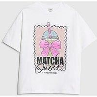 River Island Older Girls Matcha Queen T-Shirt Size & Fit Regular fit Available in sizes 5-6 years - 13-14 years Details Older Girls Matcha Queen T-Shirt by River Island White Crew Neckline Short sleeve Matcha queen graphic print Material & Care Material Content: Cotton: 100% Washing Instructions: Machine Washable