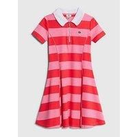 River Island Older Girls Rugby Stripe Polo Dress Size & Fit Available in sizes 5-6 years - 13-14 years Details Older Girls Rugby Stripe Polo Dress by River Island Pink Pure cotton Polo collared Quarter zipped Embroidered RI lips graphic Striped Short sleeves Material & Care Material Content: Cotton: 100% Washing Instructions: Machine Washable