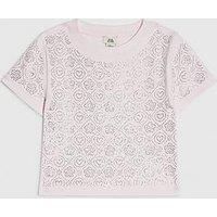 River Island Older Girls Diamante Embellished T-Shirt - Pink