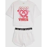 River Island Older Girls Good Vibes Smile T-Shirt Set - White