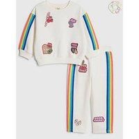 River Island Mini Girls Rainbow Badged Sweatshirt Set - Cream